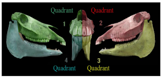 Os dentes dos eqüídeos indicam a idade dos animais através de angulações dos dentes incisivos, aberturas na face oclusal dos dentes e fendas ou fossas que marcam a parte rostral (de fora) dos dentes incisivos, bastando pra isso decorar algumas fases de trocas de dentes, angulações e marcas deixadas pelo tempo para “decifrarmos” a verdadeira idade somente olhando os dentes dos animais.